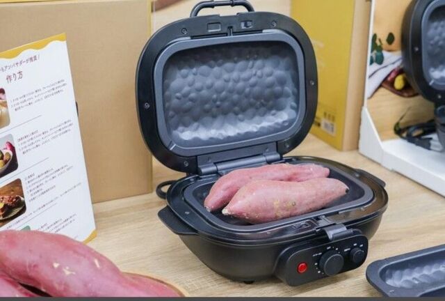 一見ホットサンドメーカーのようにも見えるこの焼き芋メーカーは、上下のヒーターでさつまいもをじっくりと焼けるもの。