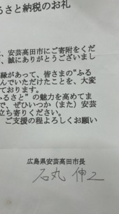 この度は、〇〇町に寄付していただきありがとうございました みたいな紙切れ一枚すら入っていない。