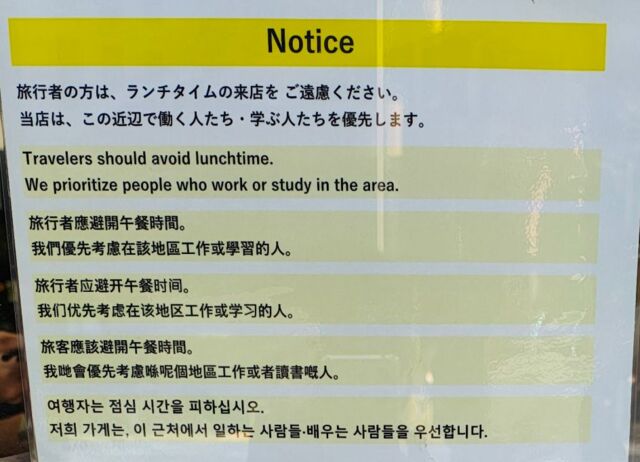「旅行者の方は、ランチタイムの来店をご遠慮ください。