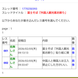 スレッドタイトル:富士そば「外国人観光客お断り」