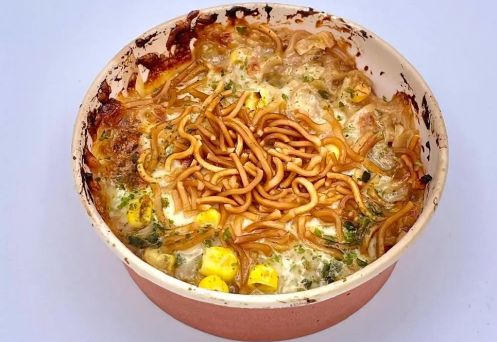 「東京うまいものフェア」、ベビースターとチーズを組み合わせた人気の仕立て、東京名物のもんじゃ焼きです。
