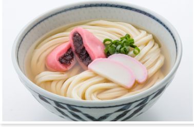 「年明けうどん」とは、元旦から1月15日までに食べるうどんのことで、メニューとしてうどんに紅いトッピングなどを添えます。