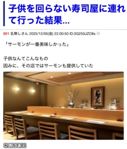 スレッドタイトル:子供を回らない寿司屋に連れて行った結果...