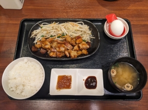 鉄板焼天神ホルモンメニュー全ての定食で『ごはん・味噌汁おかわり自由』『玉子無料サービス(生卵or目玉焼き)』を行っています。○にくまる定食・・1,680円○ホルモン定食・・1,480円○天ホル定食・・2,380円○カルビ&ミックスホルモン定食・・1,680円○サガリ&ミックスホルモン定食・・1,780円○豚タン&ミックスホルモン定食・・1,580円○ダブルステーキ定食・・1,880円〇豚タン定食・・1,580円○カルビ定食・・1,680円○サガリステーキ定食・・1,780円※1.5倍の大盛りもご用意しております。※価格は全て税込です。