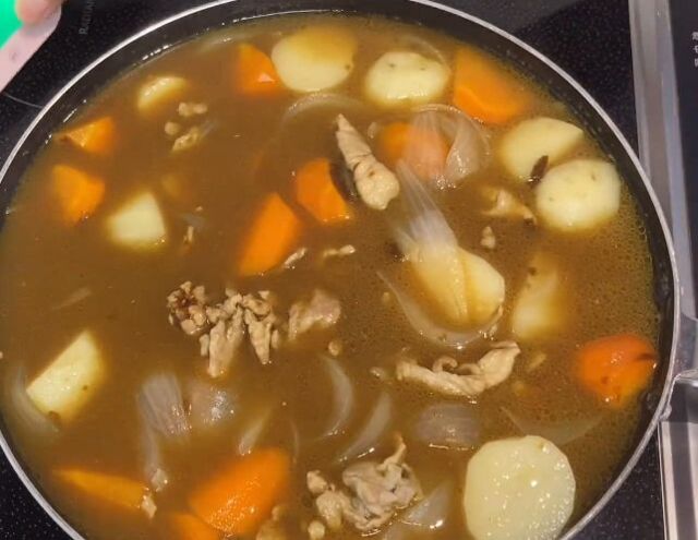じゃがいもはしばらくすると溶けて、せっかく滑らかなルーがボソボソした食感になるから入れない。