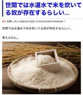 水道水で米を炊く奴がいるらしい